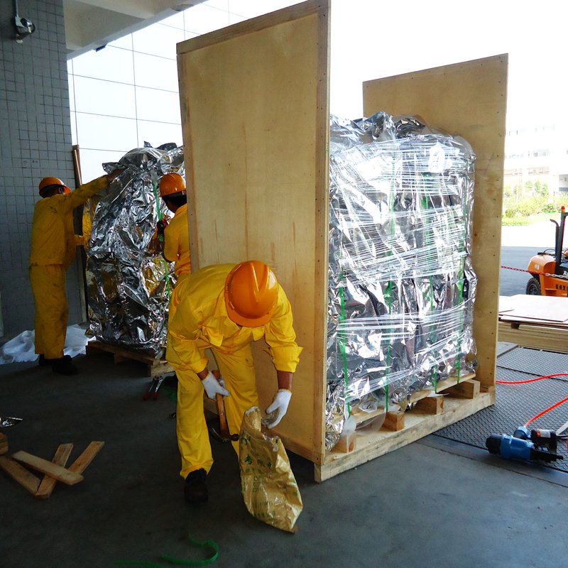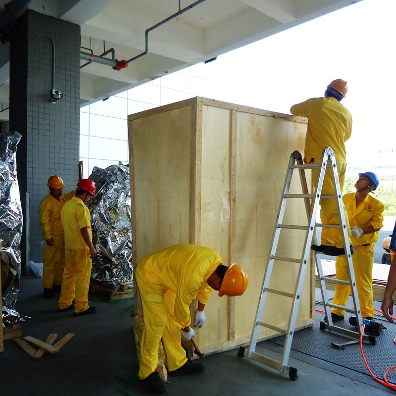 电子厂一条生产线转移国外,经海运。核心装备重量6吨。需要防潮,防水,有易碎部位防碰撞。